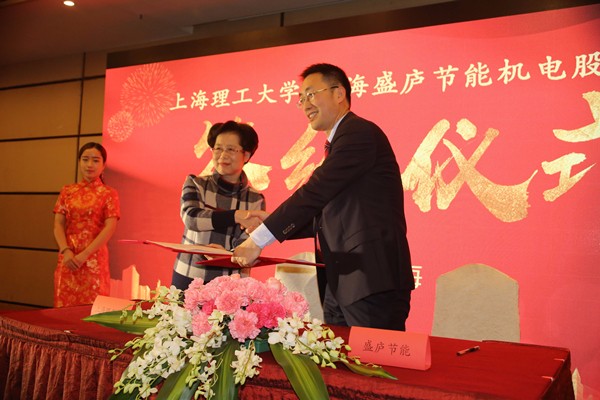 然后举行了上海理工大学与盛庐节能关于合作开展“空调新风与智能控制专业人才联合培养“及建设“中央空调能源托管大学生校外实习基地”的签约仪式。